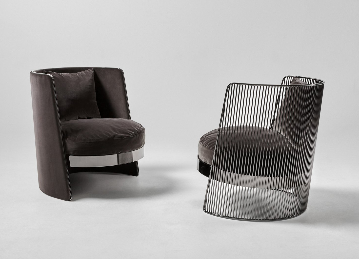 Circular geometry is the focal point of the Joelle and Miss Joelle armchairs