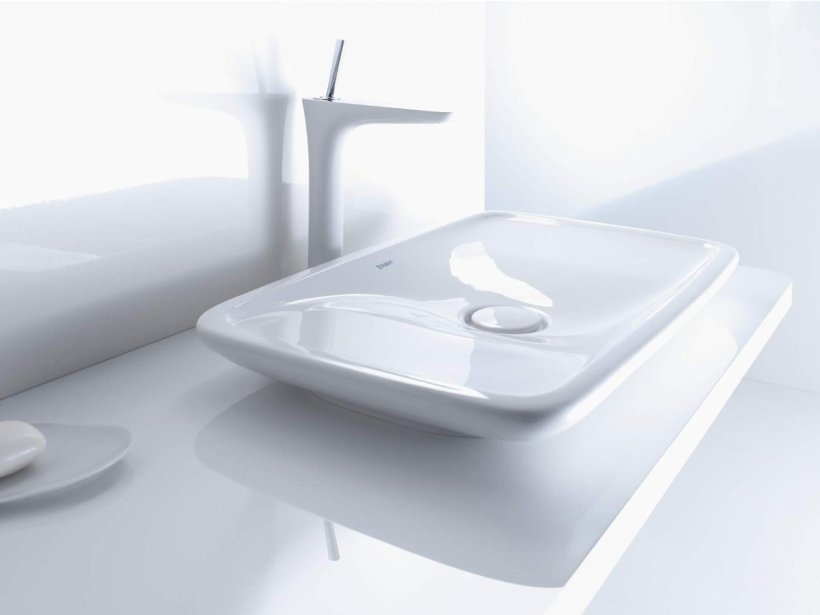 Surface-mounted tray, with grinding, without overflow, without edge for taps, fixing and drain drain, with ceramic cap included.