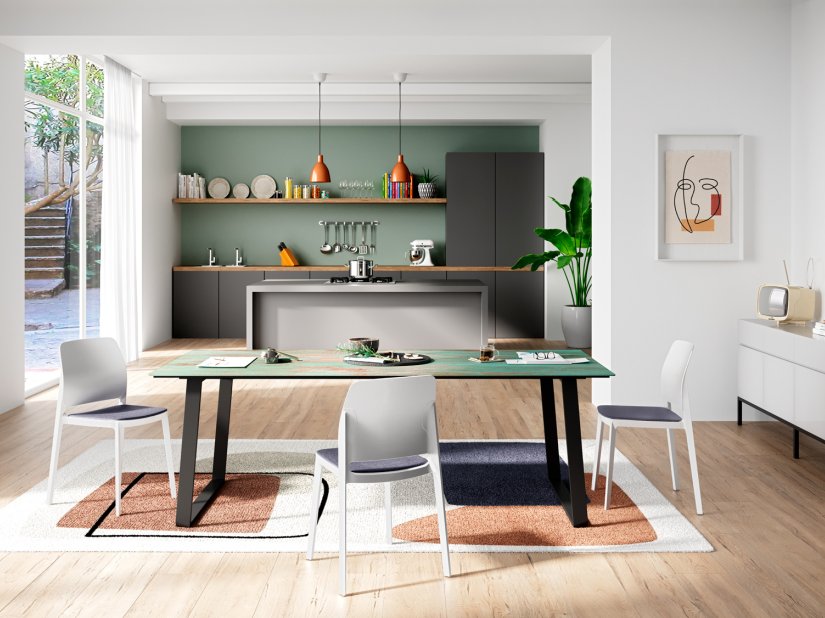 They occupy the center of the living or dining room, welcoming and gathering diners with an impactful presence, whether they feature a massive or lighter structure, sculptural or more basic legs. Rigorous, elegant or informal, single-material when legs and top are made of the same material or mixed, when the materials are different. Decorative or functional tables, fixed or extendable with changing shapes, usually involving flat surfaces.