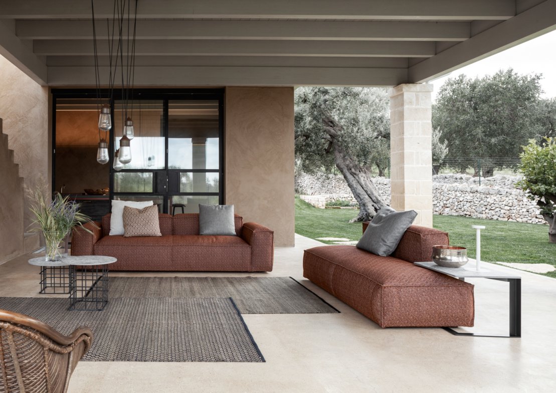 Comfortable and moveable, made with waterproofed technical fabrics that allow for outdoor use even in the rain and under harsh conditions. Sofas and armchairs populate the green areas, for relaxation in perfect tune with nature.