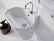 Lavabo 60x50xH30 cm in ceramica bianca con foro per rubinetteria. Completo di piletta e sifone cromati.