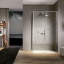 Box doccia con porta battente e fisso in linea 117-120 cm versione destra, più lato fisso 77-80 cm, con profilo finitura extrabrill, vetro cincillà spessore 6 mm, altezza 198 cm.