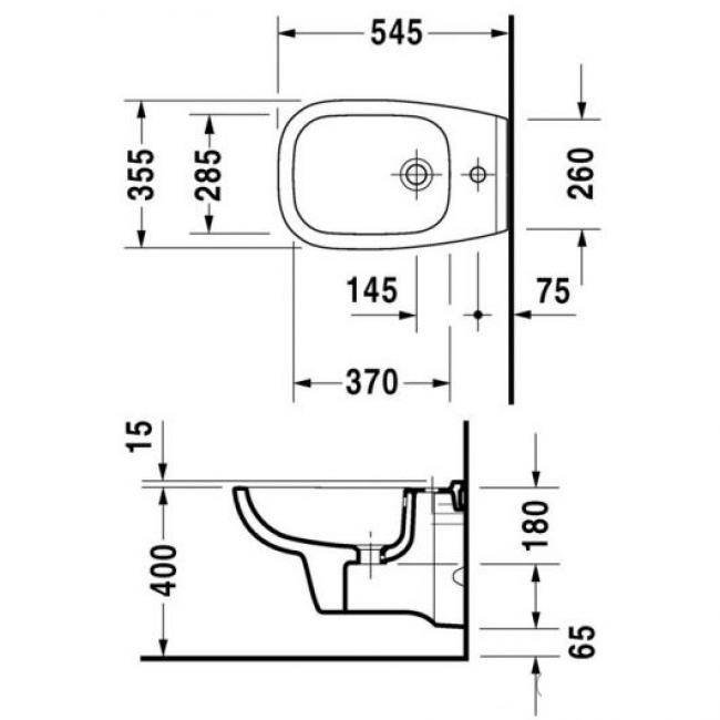 - bidet monoforo con troppopieno. Misure 54,5x33,5 cm.