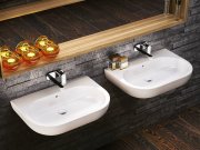 Lavabo da appoggio/sospeso 62x48xH19 cm, con troppopieno, predisposto per 3 fori rubinetto, colore bianco.