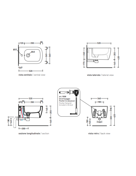- vaso sospeso gosilent, 52x36xH26 cm, completo di coprivaso slim in termoindurente con discesa rallentata e cerniere a sgancio rapido;