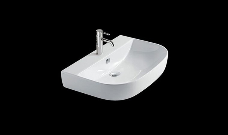 Lavabo 70x48xH14 cm, monoforo (predisposizione per 3 fori), da posizionarsi sospeso, fissaggio incluso.