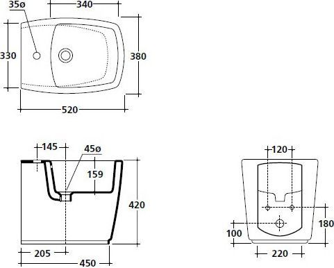 Bidet a pavimento, monoforo, 52x38xH42 cm, fissaggio incluso.